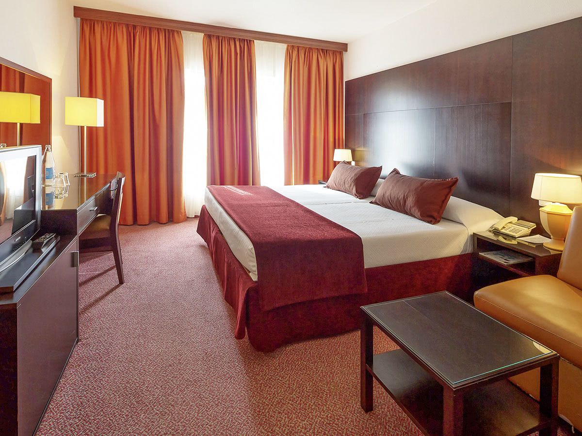 Doppelzimmer (ca. 20 qm), Klimaanlage (warm/kalt, saisonabhängig), Kabel-TV, Telefon, Safe. Dusche, WC, Föhn. Balkon. Max. 3E Doppelzimmer zu Alleinnutzung buchbar